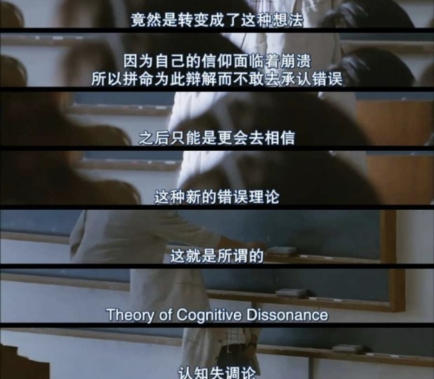 但在本片先前提到过一个名为“认知失调论”的观点。个人认为本片对于“认知失调论”的探讨很有意思。